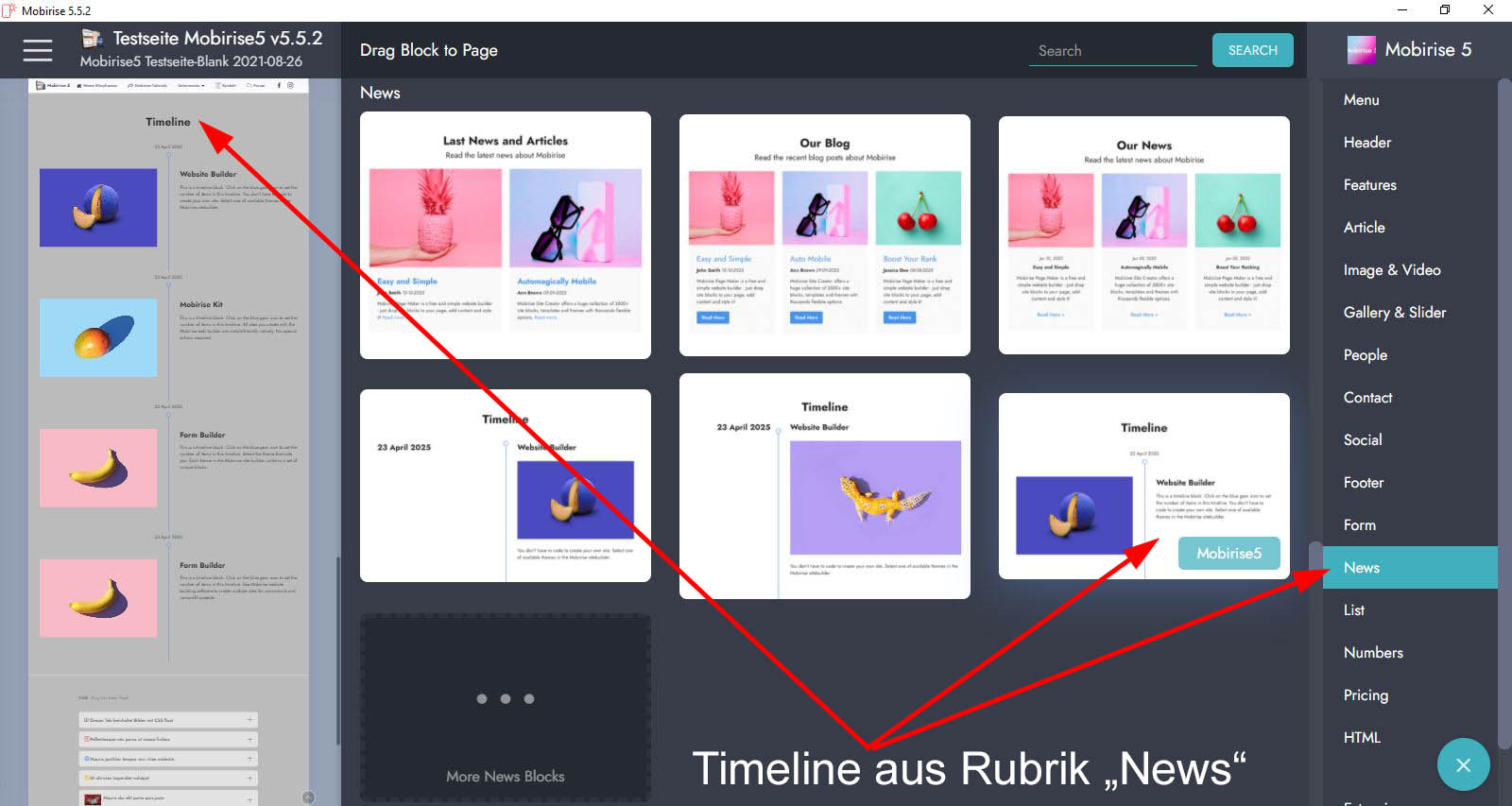 Ich verwende hier auch die neueste, freigegebene v5.5.2 von Mobirise.