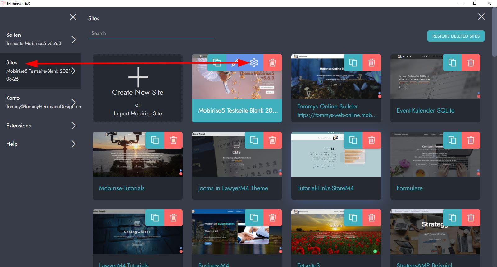 Diese Erweiterung könnt Ihr unter den "Site Settings" aktivieren/deaktivieren und einrichten. Klickt dazu auf "Sites" und am gewünschten Projekt auf das Symbol "Zahrad":