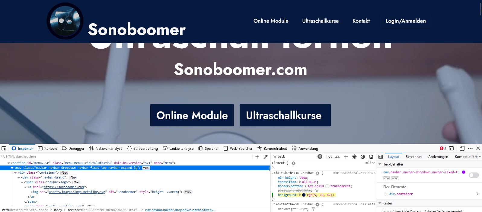 habe eine kleines Problem mit dem header Block menu2-5r auf meiner Seite https://sonoboomer.com kann die Hintergrundfarbe in den Block parameters nicht auf ein dunkles Blau ändern, d.h. es funktioniert zwar im Mobirise Editor, aber beim Upload ist der Block wieder himmelblau, ja ich habe mit F5 mehrfach refresht und auch in anderen Browsern geprüft. Habe mehrfach upgeloadet, vollständig, aber irgendwie ändert sich die Farbe des Overlays nicht.
