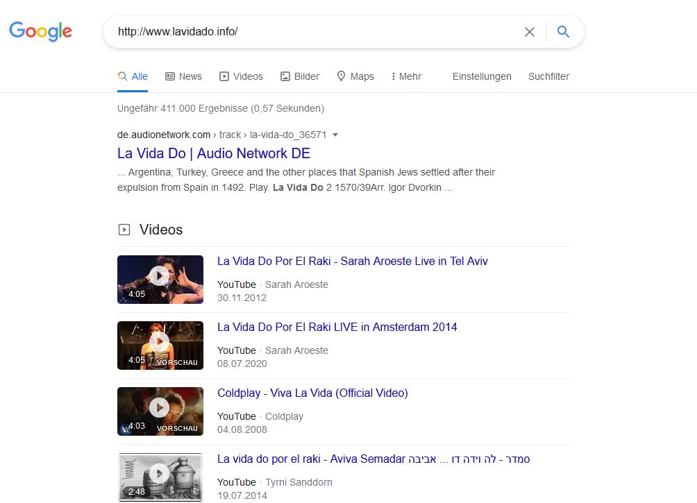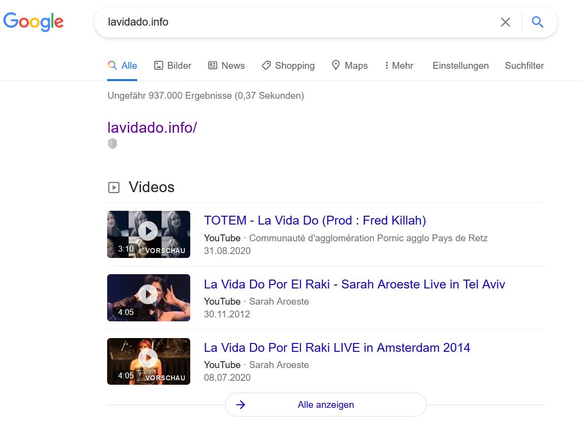 Ich lande bei meiner neuen Seite https://www.lavidado.info noch nicht einmal unter den 100 ersten.