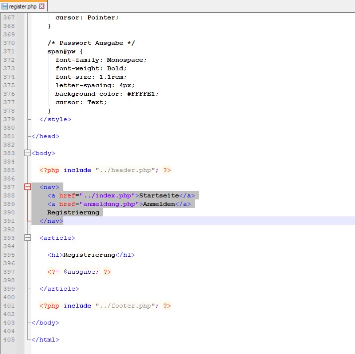 Also mal als Beispiel, in der Seite "hauptseite.php" steht beim Werner noch: