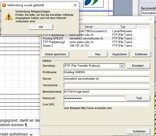 Mit Filezilla habe ich einen Zugang - und die Einstellungen habe ich (auch zusammen mit dem Provider) überprüft, sie sind identisch.