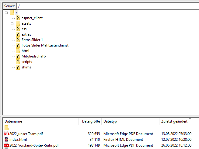 Also mein nächster Schritt: ich lösche die Dateien mit Leerzeichen im FileZilla und lade das Ganze nochmals hoch.