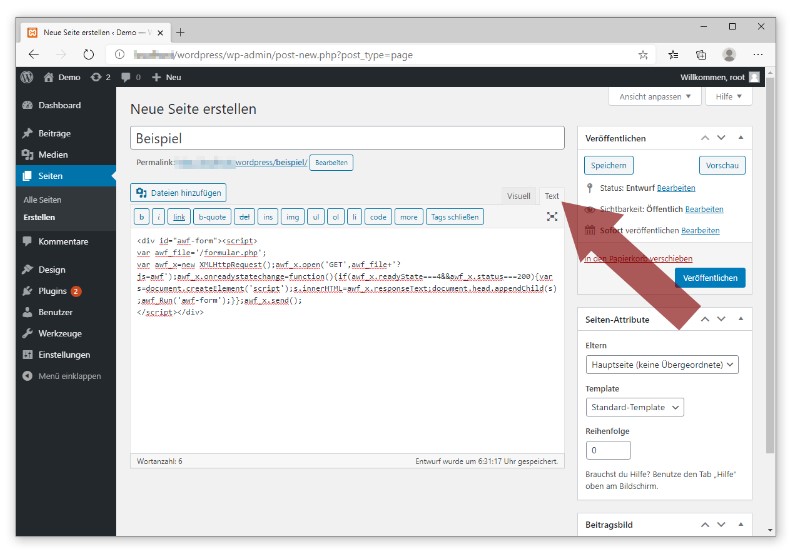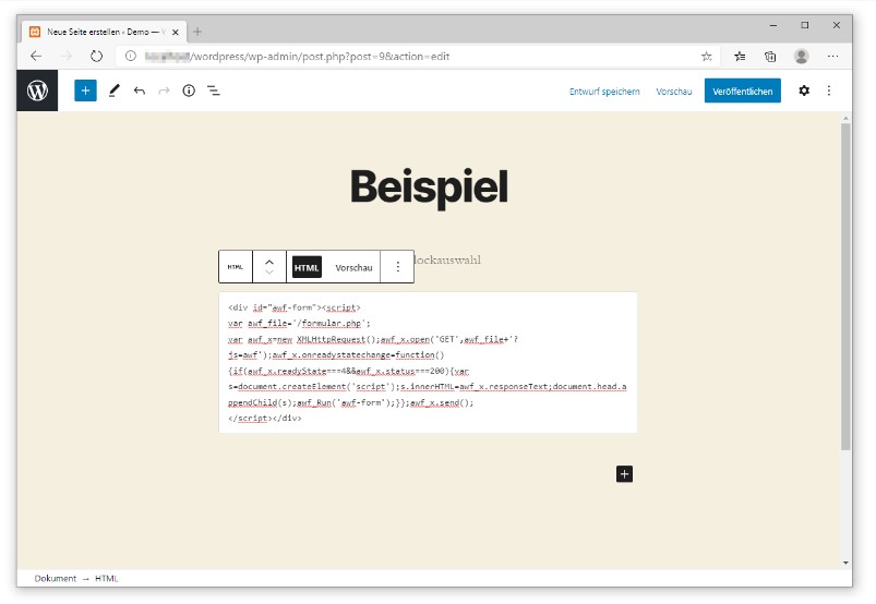 Man kann das fertige Formular von "Arclab" auch direkt in "WordPress" einbinden: