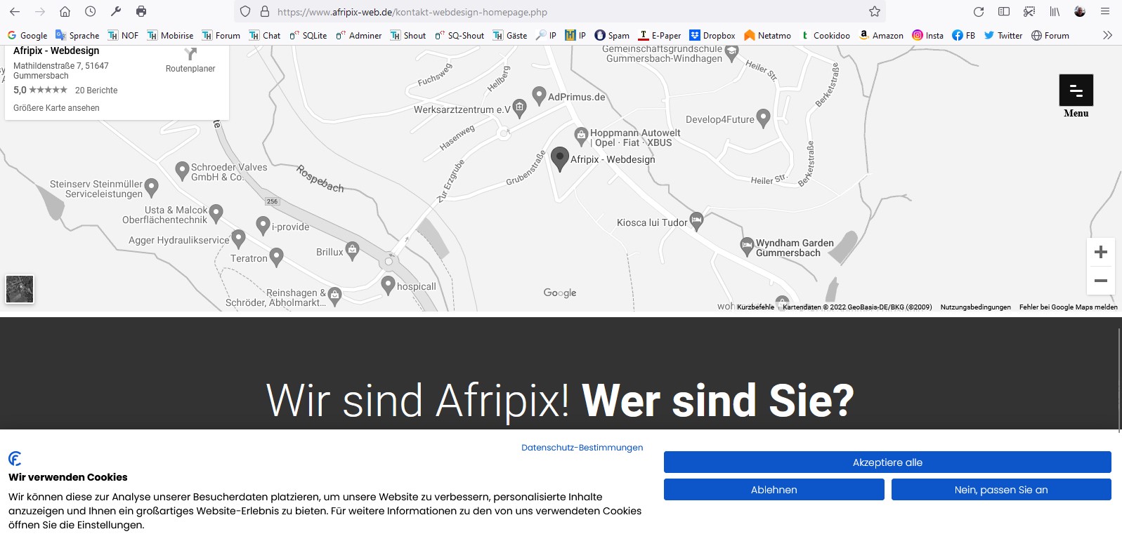 Zum Testen: Cookies ablehnen und in Kontakt die Anfahrtskarte anschauen, die man erstmal nicht sehen kann.