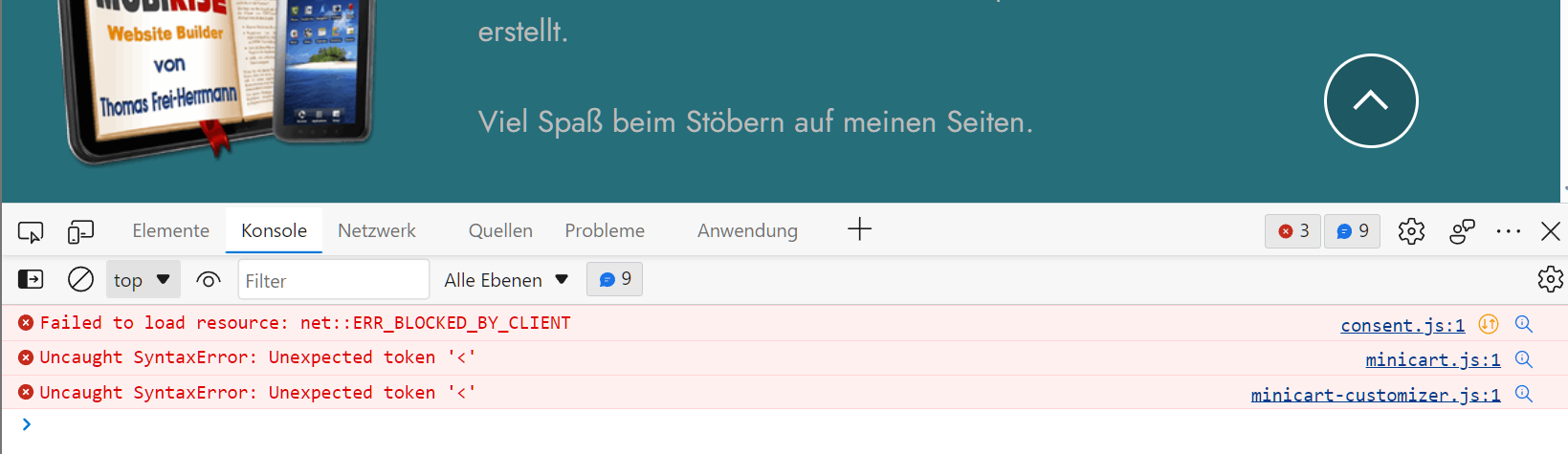 Bei mir im Browser wird diese ominöse "consent.js"-Datei immer geblockt, was für ein Glück
