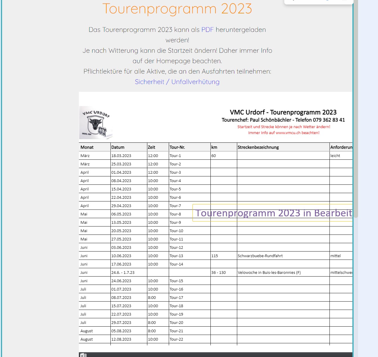 Ich habe einen Link zur PDF-Datei eingefügt. Die Vereinsmitglieder können das Programm herunterladen und ausdrucken.