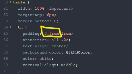 Wolltest Du die Tabellen-Reihen schmaler oder breiter haben, kannst Du dem Selektor "table row" (Tabelle Reihe):