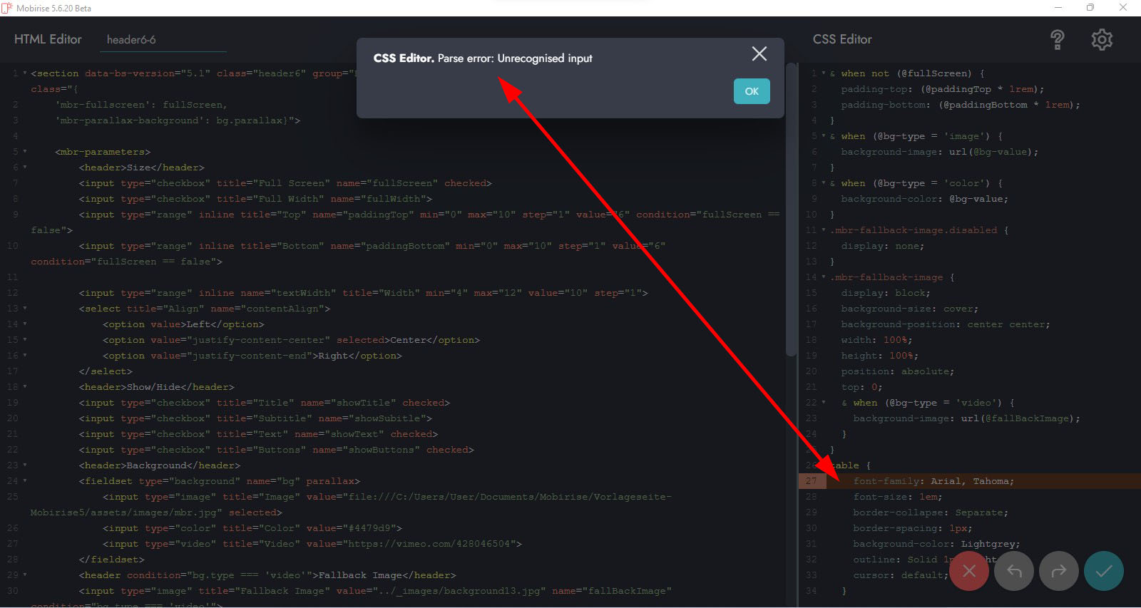 Auch mit dem Firefox kopierter CSS-Code von PHP-Seiten ist nicht in den Mobirise "CSS Editor" einzufügen, da dieser als "invalider" Code nicht angenommen wird. Auch nicht, wenn man diesen über einen anderen Editor zwischenspeichert.