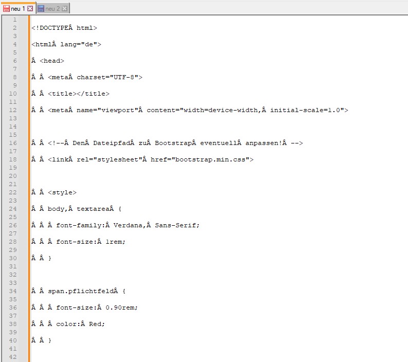 ... ja - so sollte es aussehen, wenn ich im "Notepad++" umstelle auf ANSI - das ist der Code kopiert mit dem "Edge":