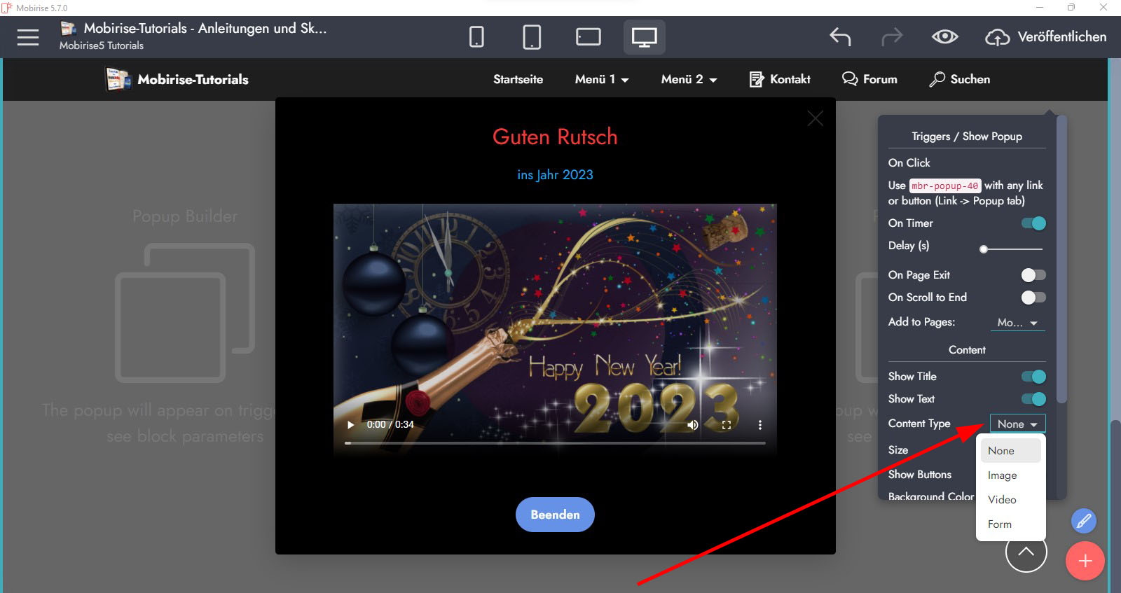 welches Popup meinst Du jetzt? Den Popup-Builder mit Video oder eines der Video-Popup Blöcke von Mobirise?