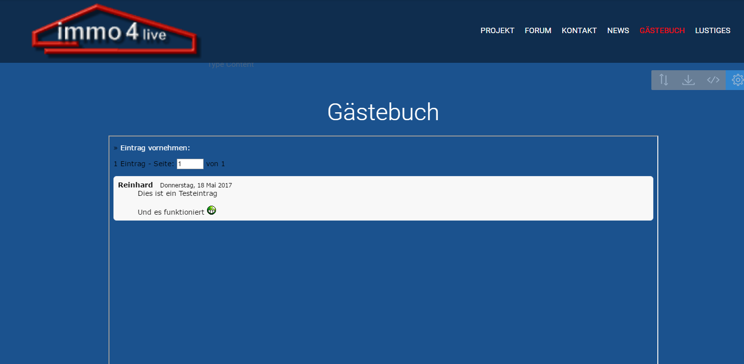 Darin erscheint mein noch aktives Gästebuch.