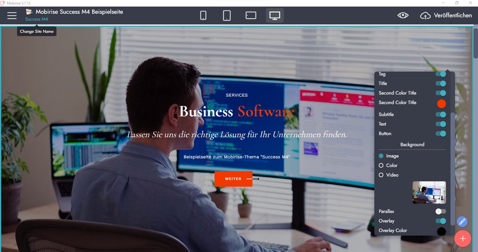 Anschließend öffnet sich der Bild-Editor von Mobirise und Du wählst am linken Tab "Im Computer suchen" und dann Dein Bild.
