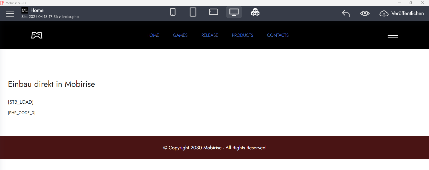 Ich habe es auch mal direkt in Mobirise eingebaut.