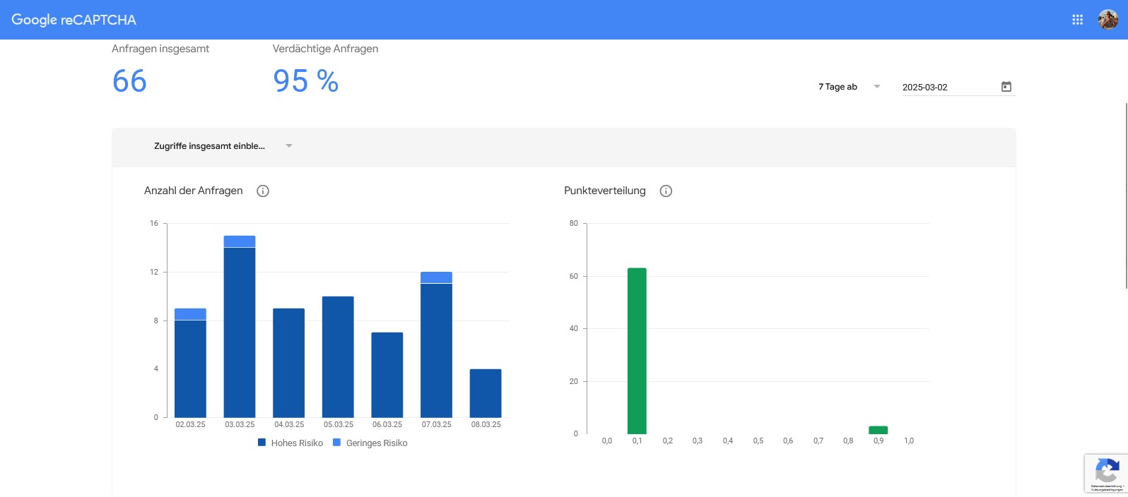 … also meine reCAPTCHA Prüfung hat so um die 10 Anfragen pro Tag, inklusive des Forums hier: