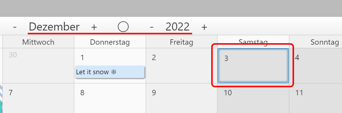 Den Fehler mit der falschen Markierung beim Sprung auf den Dezember hatte ich nie entdeckt, obwohl ich das Dutzende Mal genau so getan habe