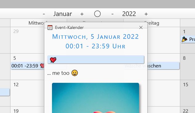 Das Pop-up legt sich als Layer (100%) hinter dem Fenster, so das keine Auswahl vom Kalender mehr getätigt werden kann. Das war immer am Handy ärgerlich, wenn man zufällig mit dem Finger auf eine Stelle im Kalender gelangte.