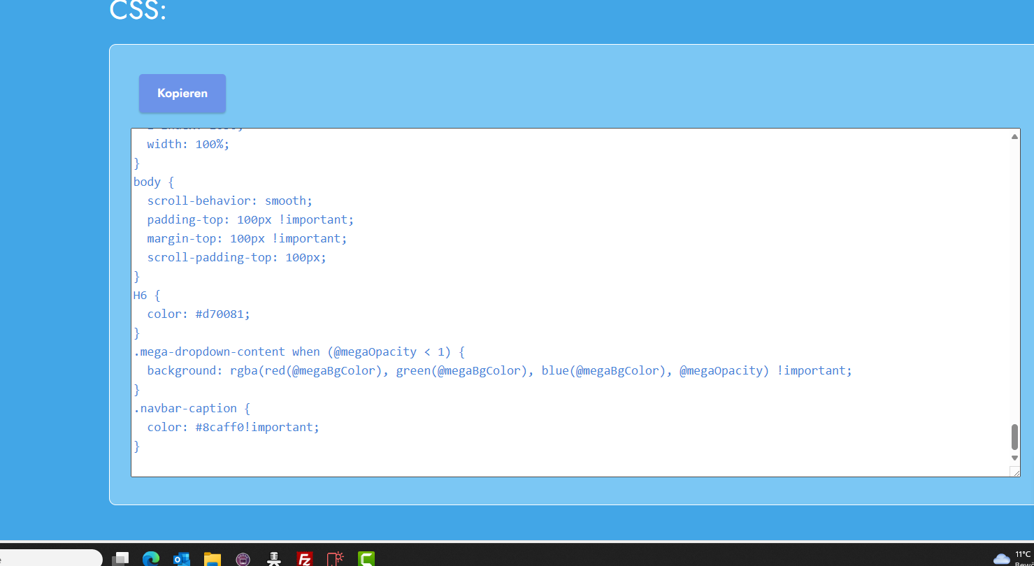 Unten meine hier verwendeten Codes. Ersetzt den gesamten HTML und CSS Code der Menüleiste im Code Editor. Wenn ich den Code da kopiere und in ein standard m5 menü einfüge bekomme ich diese Fehler.