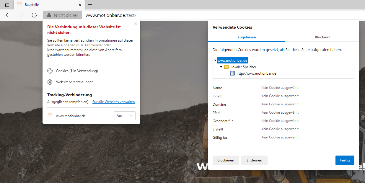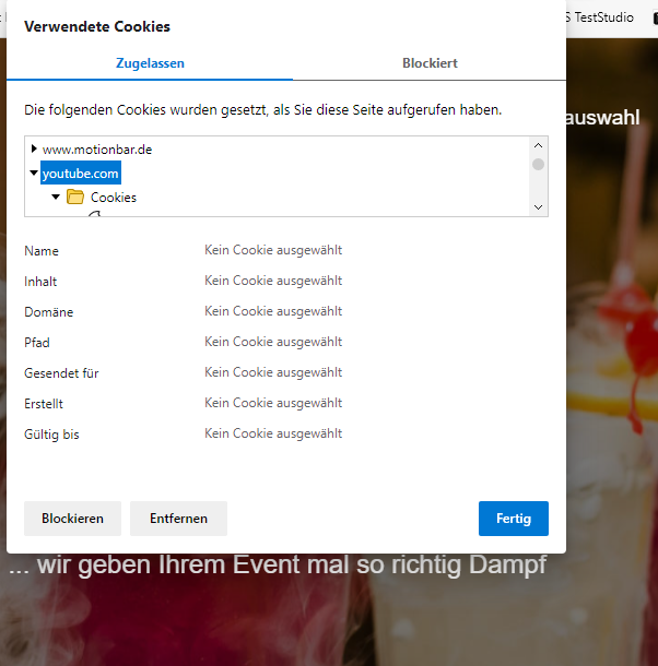 edge://settings/cookies/detail?site=www.motionbar.deHast Du denn, z.B. im Chrome-Browser und natürlich auch bei allen anderen Browsern, auch beim Löschen der Cookies den "gesamten Zeitraum" gewählt und nicht z.B. nur die letzte Stunde?