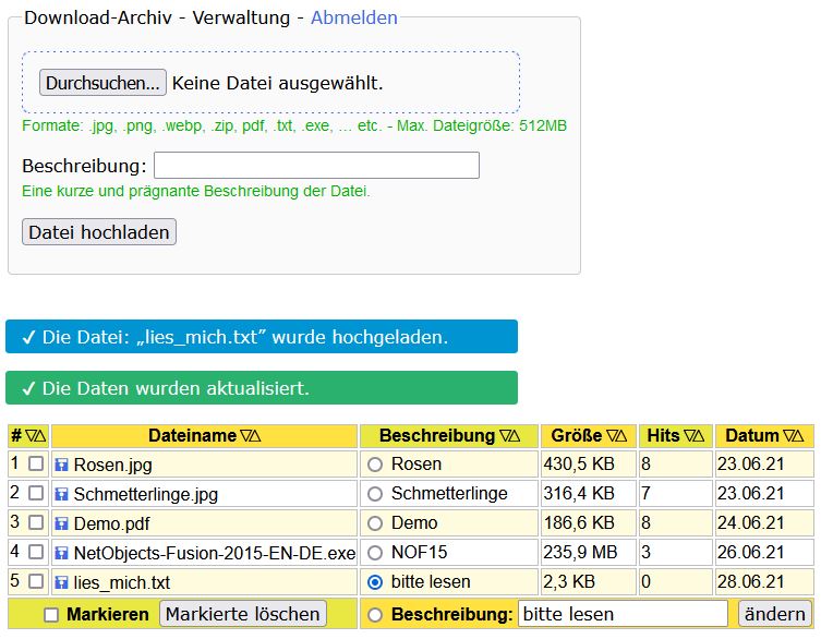 mir ist aufgefallen, dass Du in der Datei:Werner-Zenk.de hat geschrieben: Sa 26. Jun 2021, 14:03 Die Beschreibung kann nun nachträglich geändert werden.