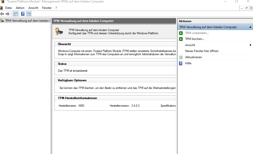 ich habe TPM im Bios aktiv gesetzt und WIndows zeigt es mir mit dem Befehl :"tpm.msc" auch an.