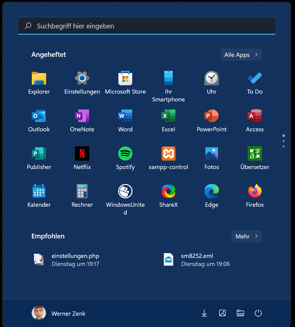 Ich möchte hier meinen Statusbericht über Windows 11 abgeben. Nach drei Wochen habe ich festgestellt das ich das alte Startmenü nicht mehr vermisse. Ich sehe zwar nicht mehr alle Programme auf einem Blick, jeder Abschnitt enthält 18 Programme (dann muss man scrollen) Ich weiß aber ungefähr im welchem Abschnitt diese liegen.