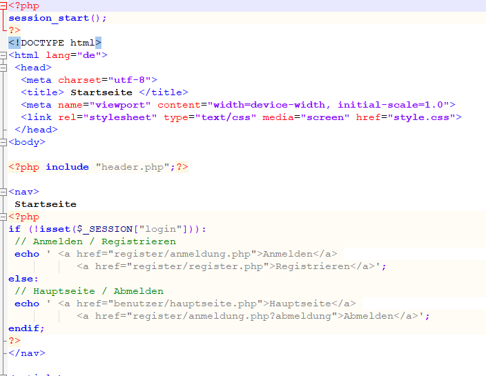 Die Index.php von Werner z.B. hat vorher noch den Session start drin stehen.