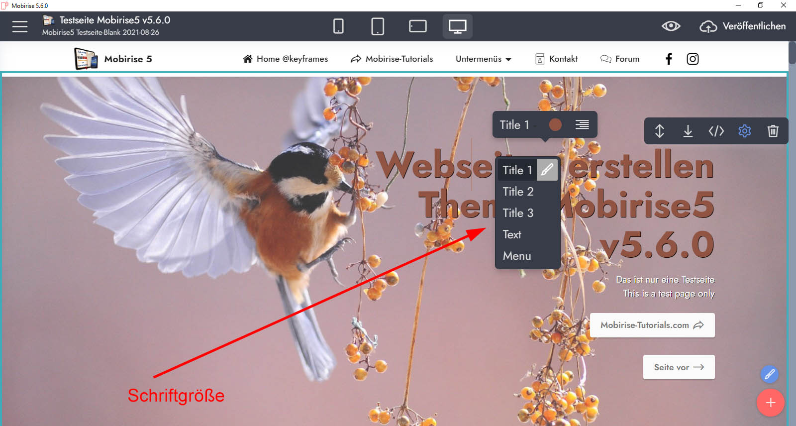 ... klicke auf die zu ändernde Schrift in Deiner Arbeitsansicht von Mobirise.