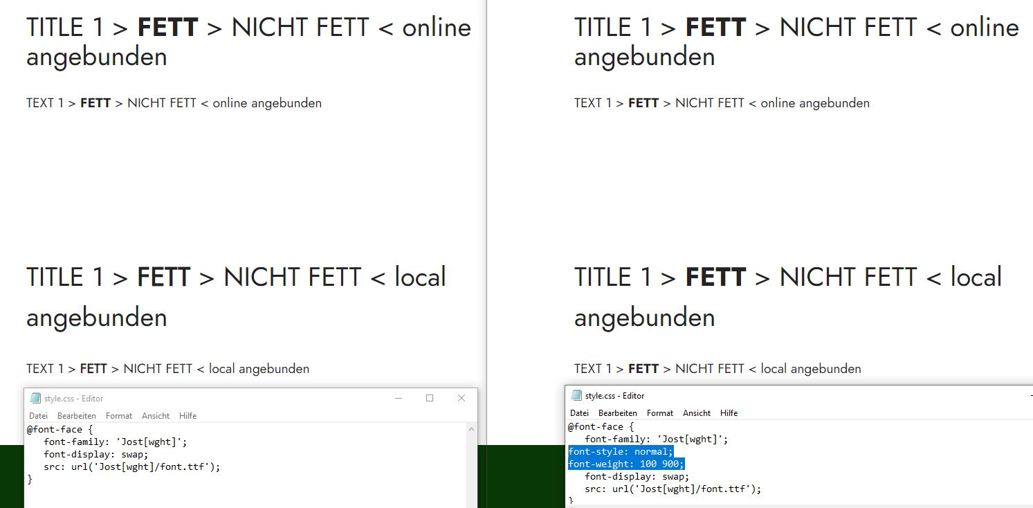 ... ich habe eben mal mein Tutorial, zu der ursprünglichen Idee von Dir zu der Verwendung der gesamten Font-Weights einer Google-Schrift in lokale Verweise zu ändern, nun fertig geschrieben: