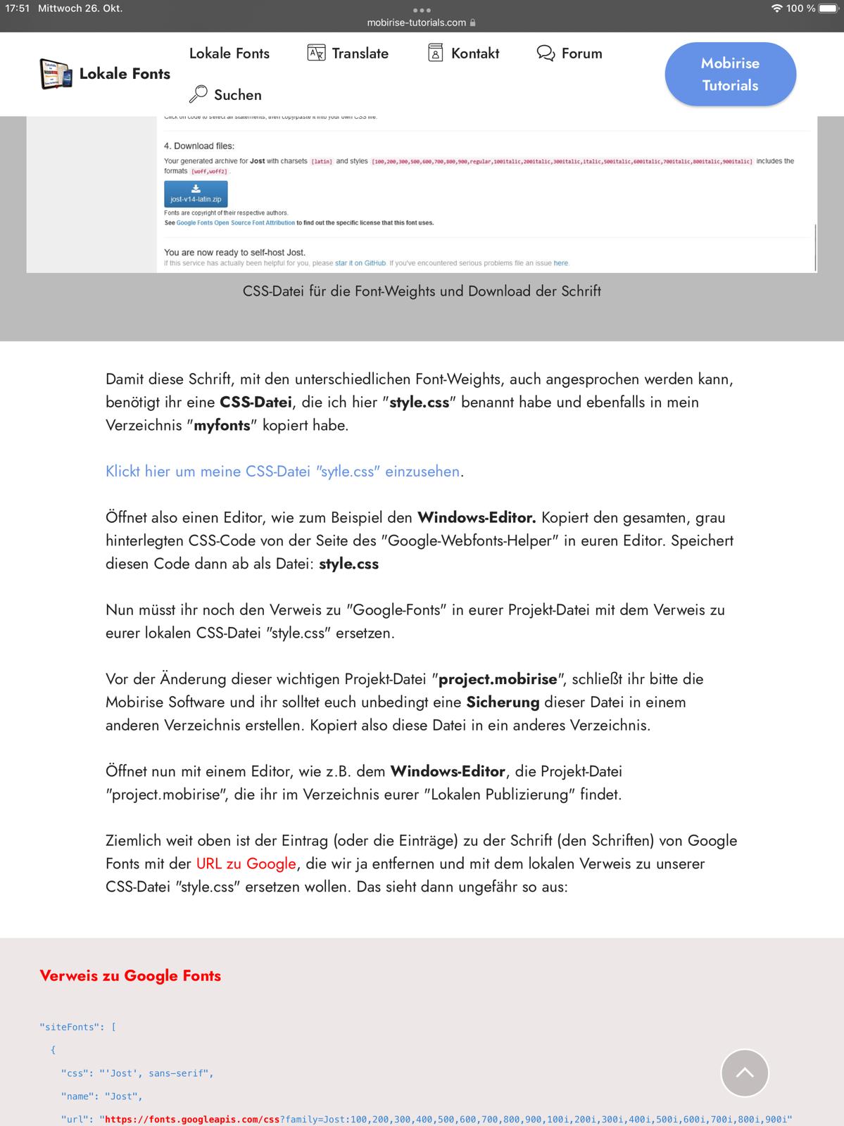 Dennoch - jetzt habe ich das ja mal versucht - und siehe da, es geht eben auch ohne den Verweis zu Google-Fonts! Es werden auch unterschiedliche Font-Weights gezeigt - wie ich meine. Man sieht zum Beispiel einen leichten Unterschied zu meiner anderen Tutorial-Seite, bei der ich andere Fonts lokal verwende im Bereich "Menü" und den "Buttons". Ich habe mir das haarklein angeguckt.