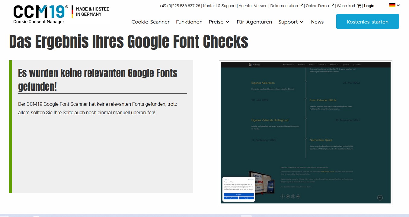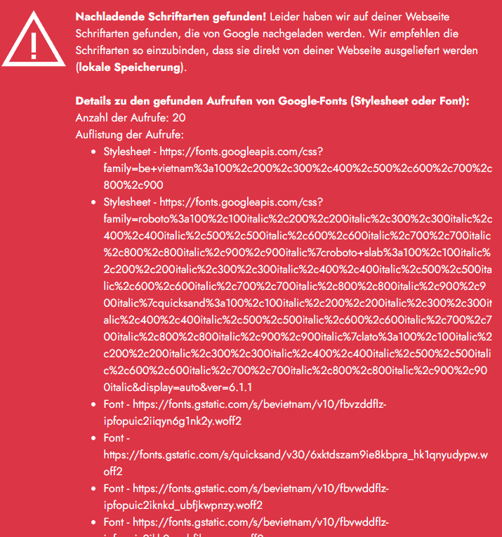 Dann habe ich noch "https://www.ccm19.de/google-fonts-checker" bemüht.