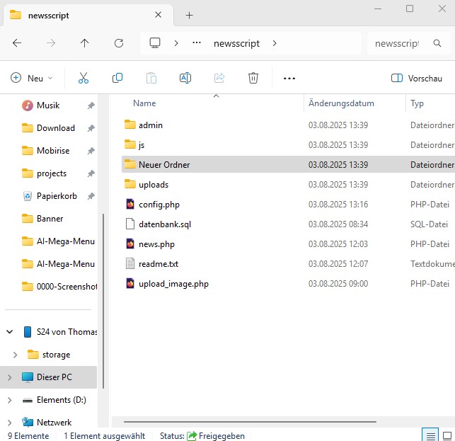 Weiterhin hast Du einen überflüssigen Ordner im Download: "Neuer Ordner"