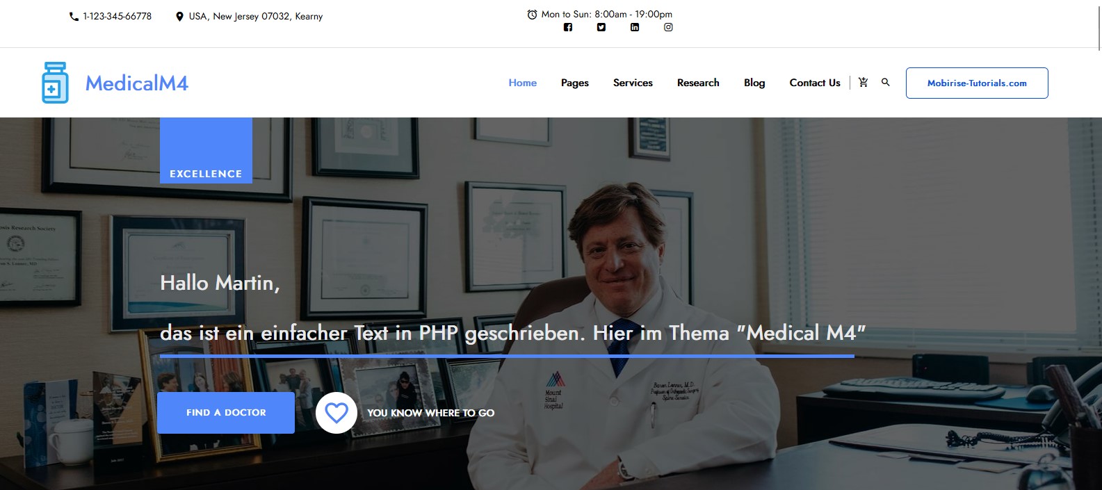 Die weiße Schrift im Header-Block ist in PHP eingefügt: