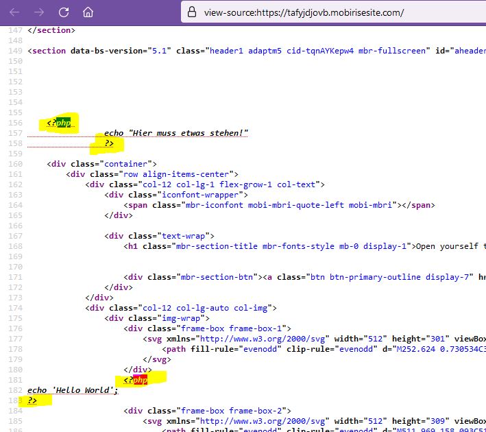 Bei Martin wird jeder PHP-Befehl angeblich von Mobirise <!-- auskommentiert -->. Bei mir ist das noch nie passiert.