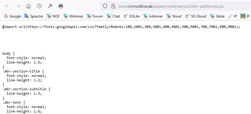 In den alten Mobirise-Versionen steht das noch als "Import" in der CSS-Datei direkt drinnen: