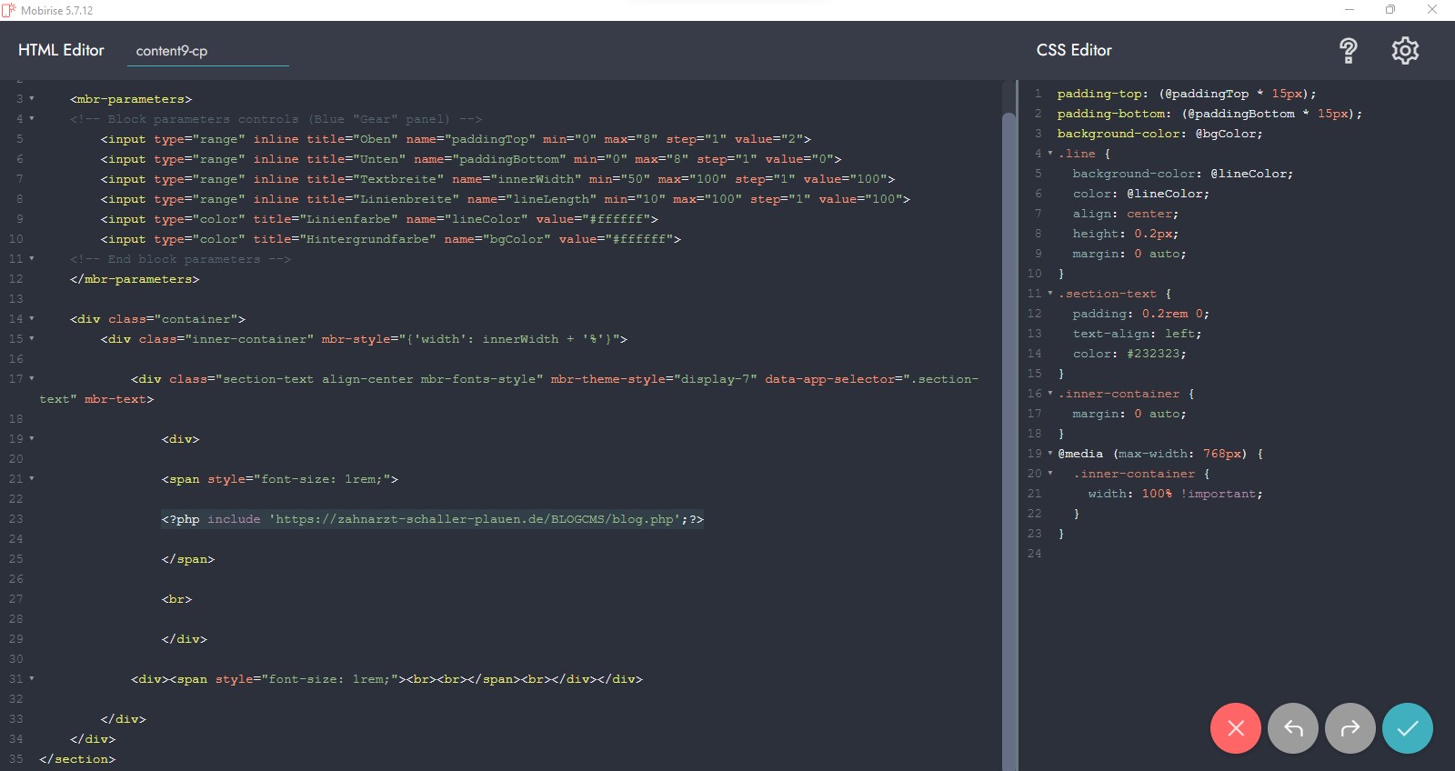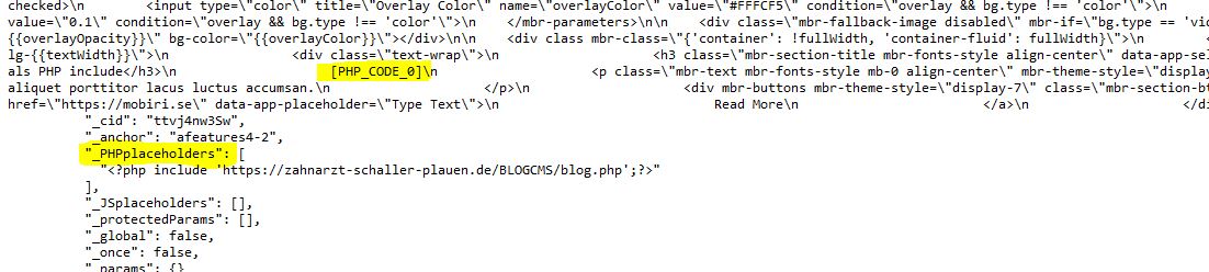 ... und wieso wird dann von Mobirise sogar ein Hinweis auf PHP Code im Block angezeigt. Mobirise hat alle Blöcke und den "Code Editor" auf PHP Code eingerichtet: