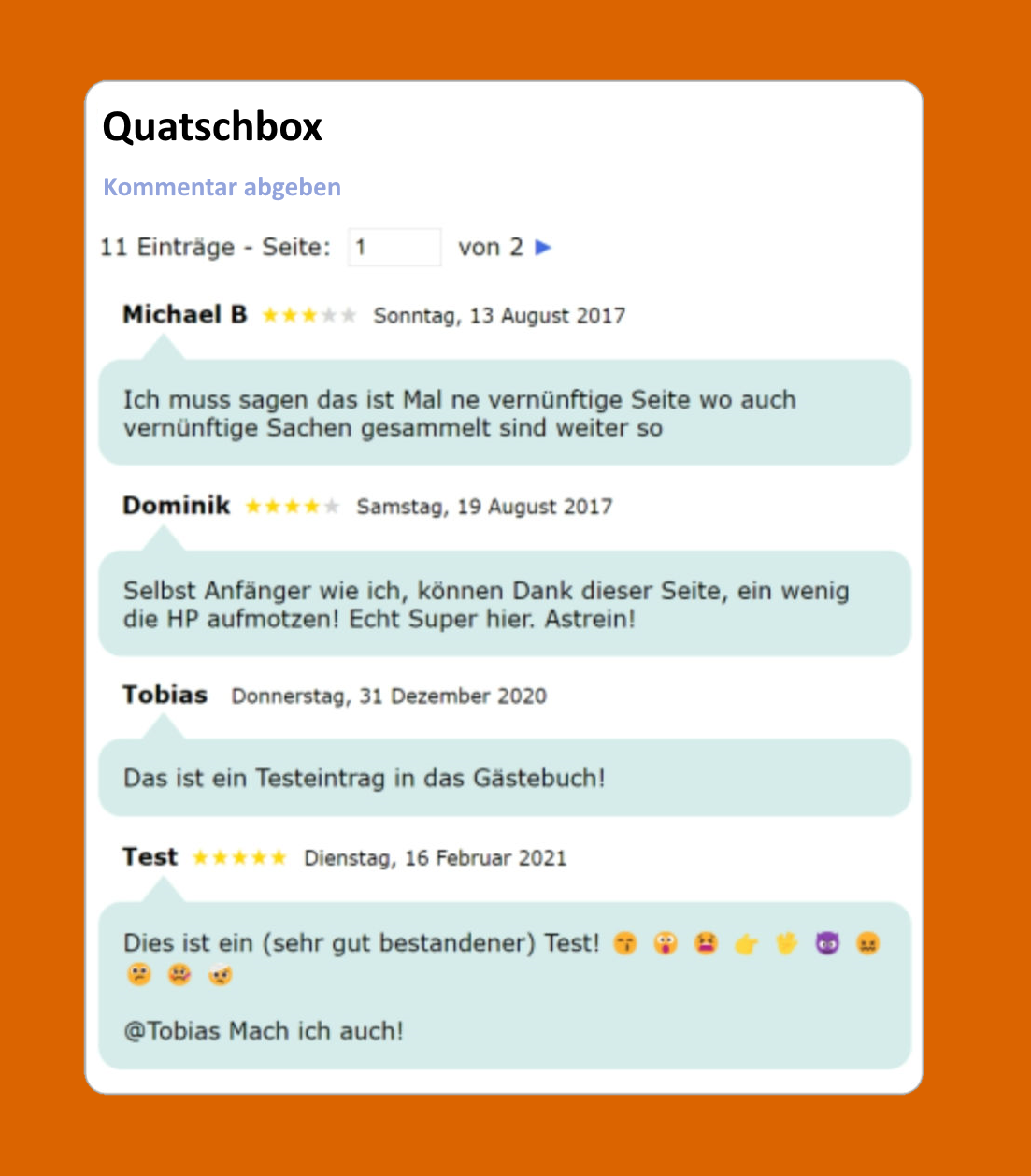 ... das mit den Sprechblasen habe ich bisher nur beim Gästebuch vom Werner mal gesehen aber nicht bei der Anwendung "Kommentar-Box"
