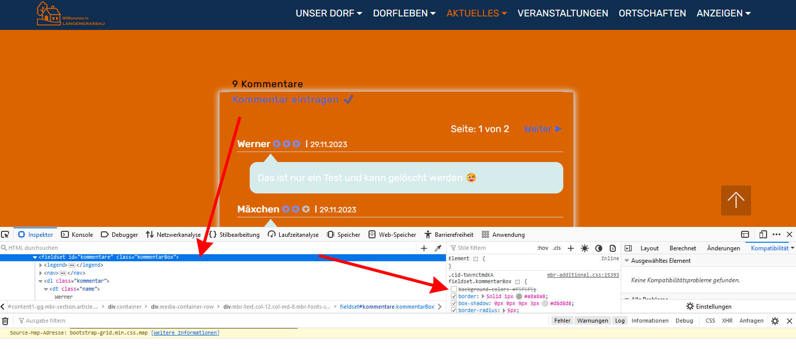 Da kannst Du dann z.B. gleich den Namen der CSS-Klasse class="kommentarBox" auch sehen.