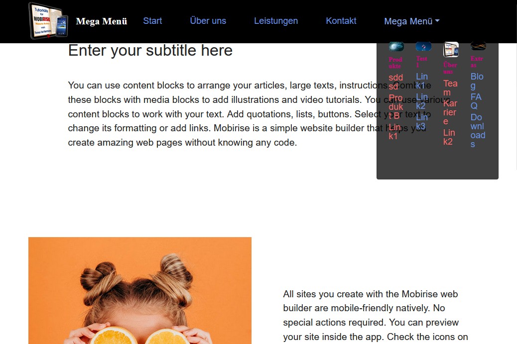 Das versuche ich mal - also mit der ganz normalen Navi von Mobirise