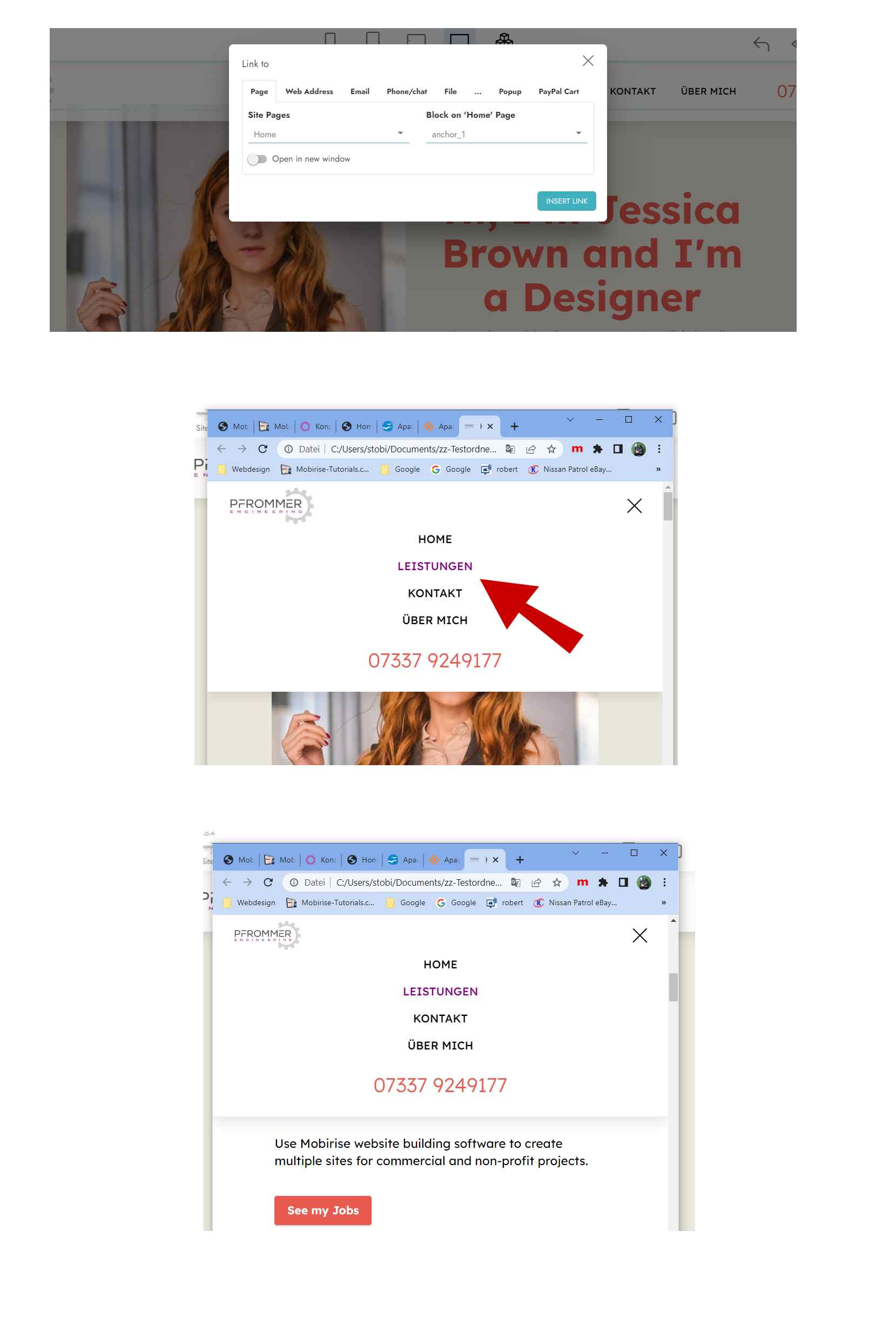 LEISTUNGEN ist ein Anker - und das Menü schließt sich aufm Handy.