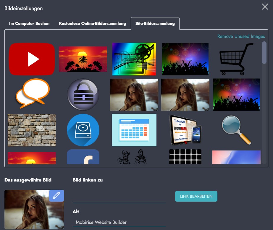 In dieser Ansicht der verwendeten Bilder befinden sich übrigens immer Bilder - eben auch jene Bilder, die von Mobirise als Beispielbilder eingesetzt wurden.