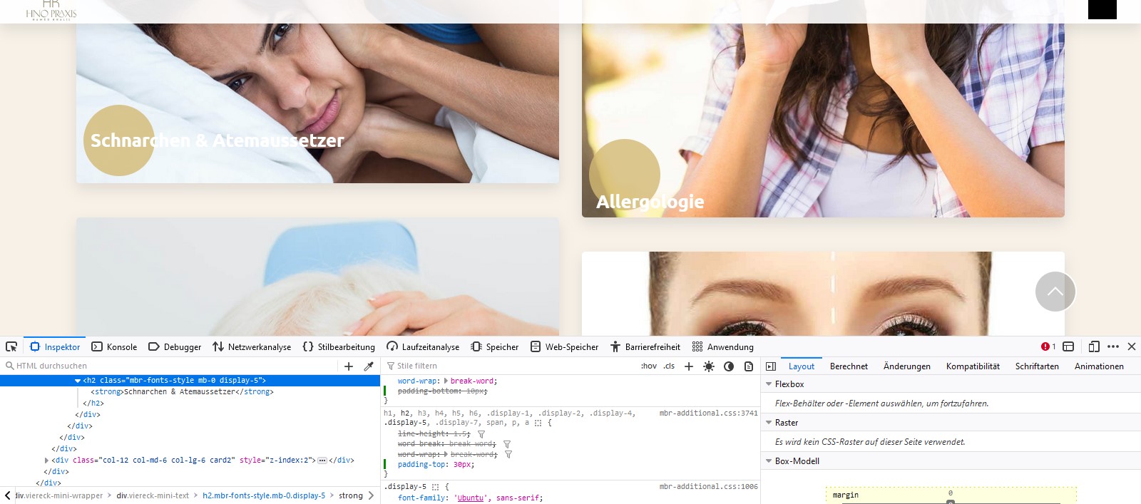 Also das ist ja das <H2> Tag. Ich habe mal das <br> davor entfernt und dann ein padding-top von 30px eingetragen - jetzt nur mal im linken Bild "Schnarchen":