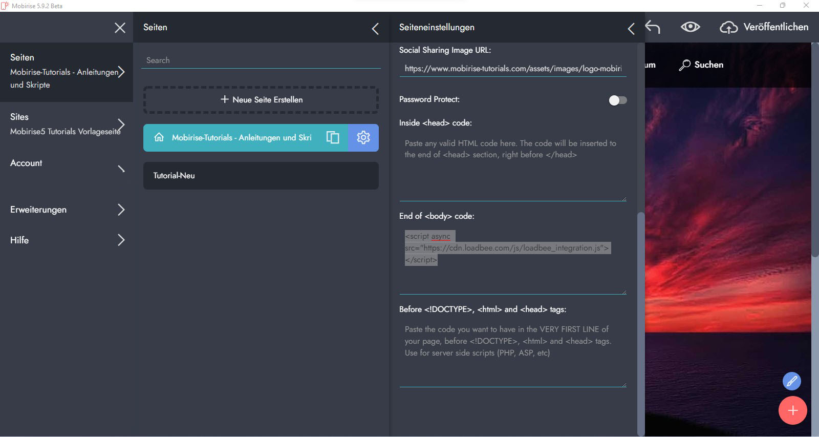 Re: Externe Seite in Mobirise laden