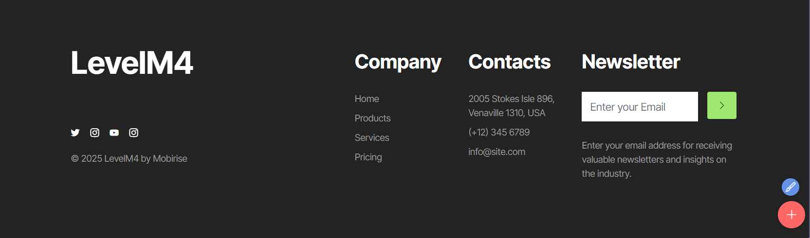 Mit der Erweiterung "Form Builder" (Formular-Editor) von Mobirise kannst Du auch ganz eigene Formulare erstellen - auch mit nur einem E-Mail Feld.