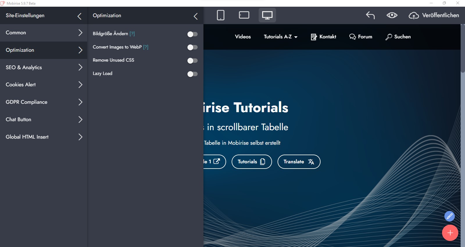 Mobirise komprimiert offensichtlich automatisch die Bilder.