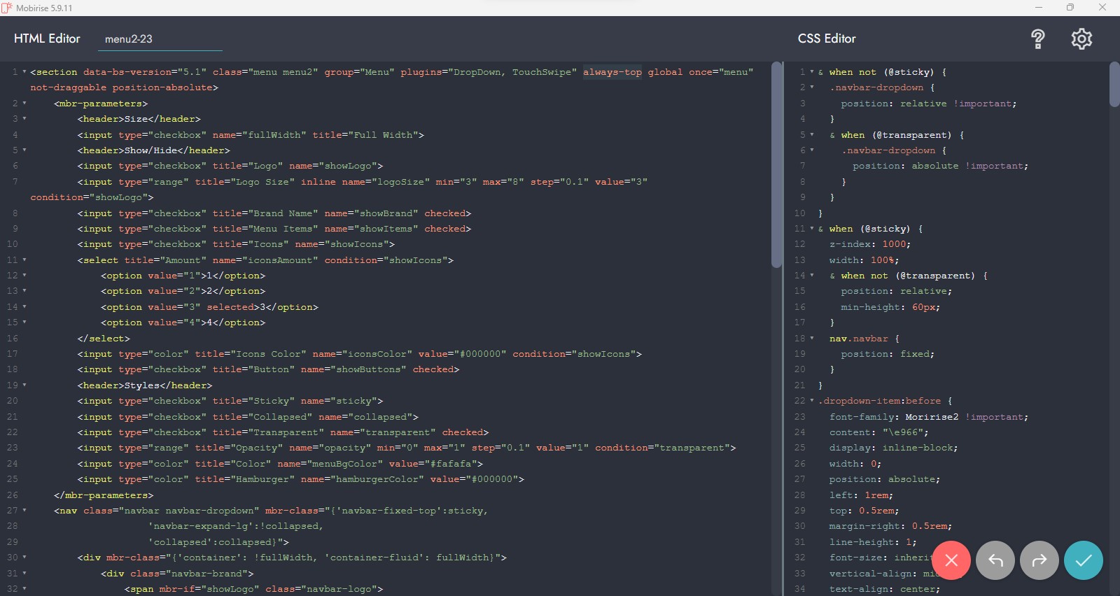 Auch die Menüs von Mobirise lassen sich doch ziemlich gut den eigenen Bedürfnissen anpassen.