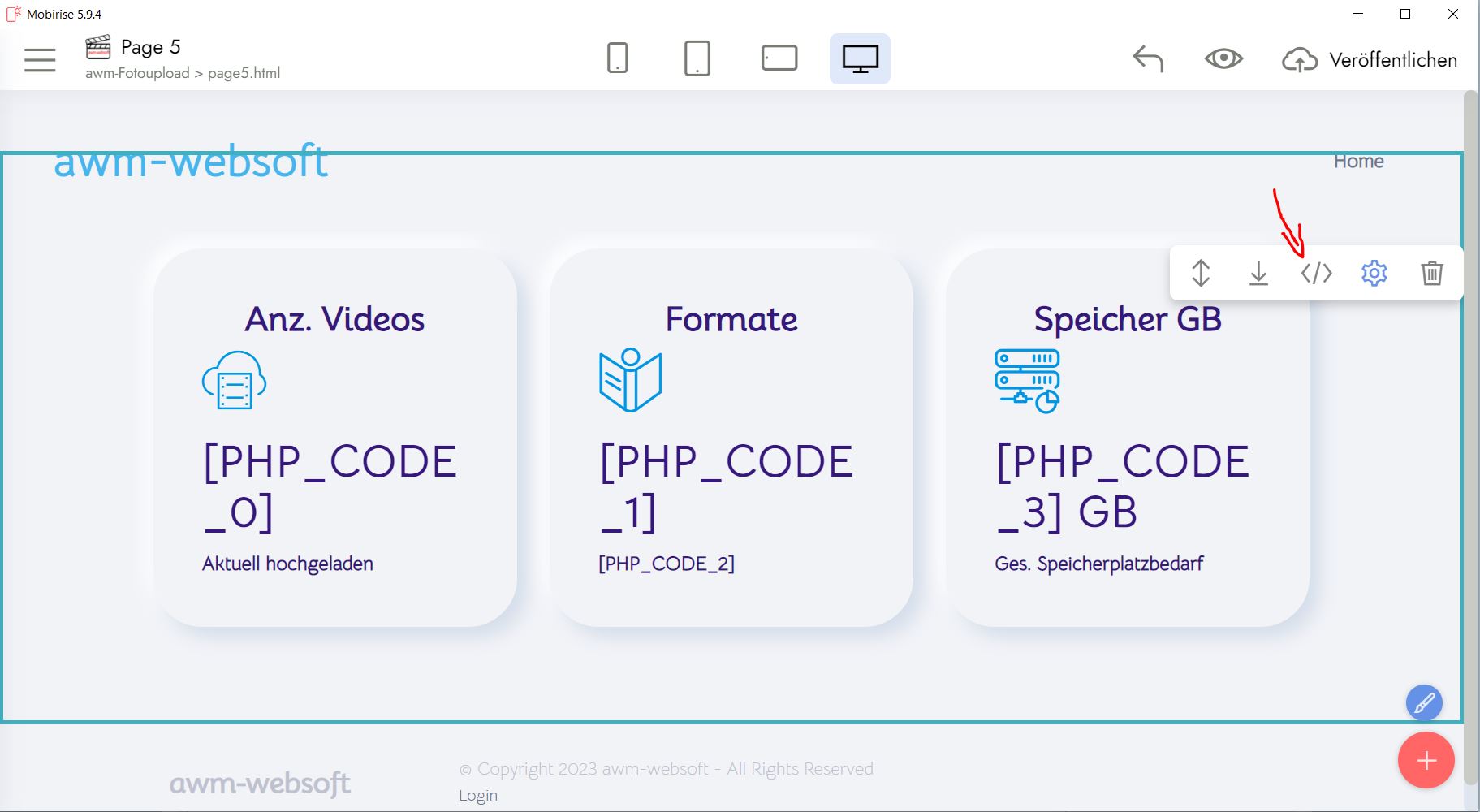 Den "Code Editor" von Mobirise braucht man aber dann auch, sonst kann man nichts einbinden