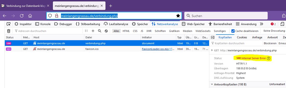 Da beim Aufruf der verbindung.php ein 500er fliegt muss in der Datei was "oberfaul" sein.