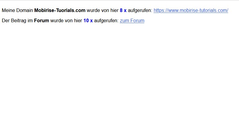 Natürlich kann man dieses Script auch ebenso lediglich zur Anzeige der Klicks zu einer bestimmten Seite verwenden, wie bei meinem (Werners) "Formular-Generator":