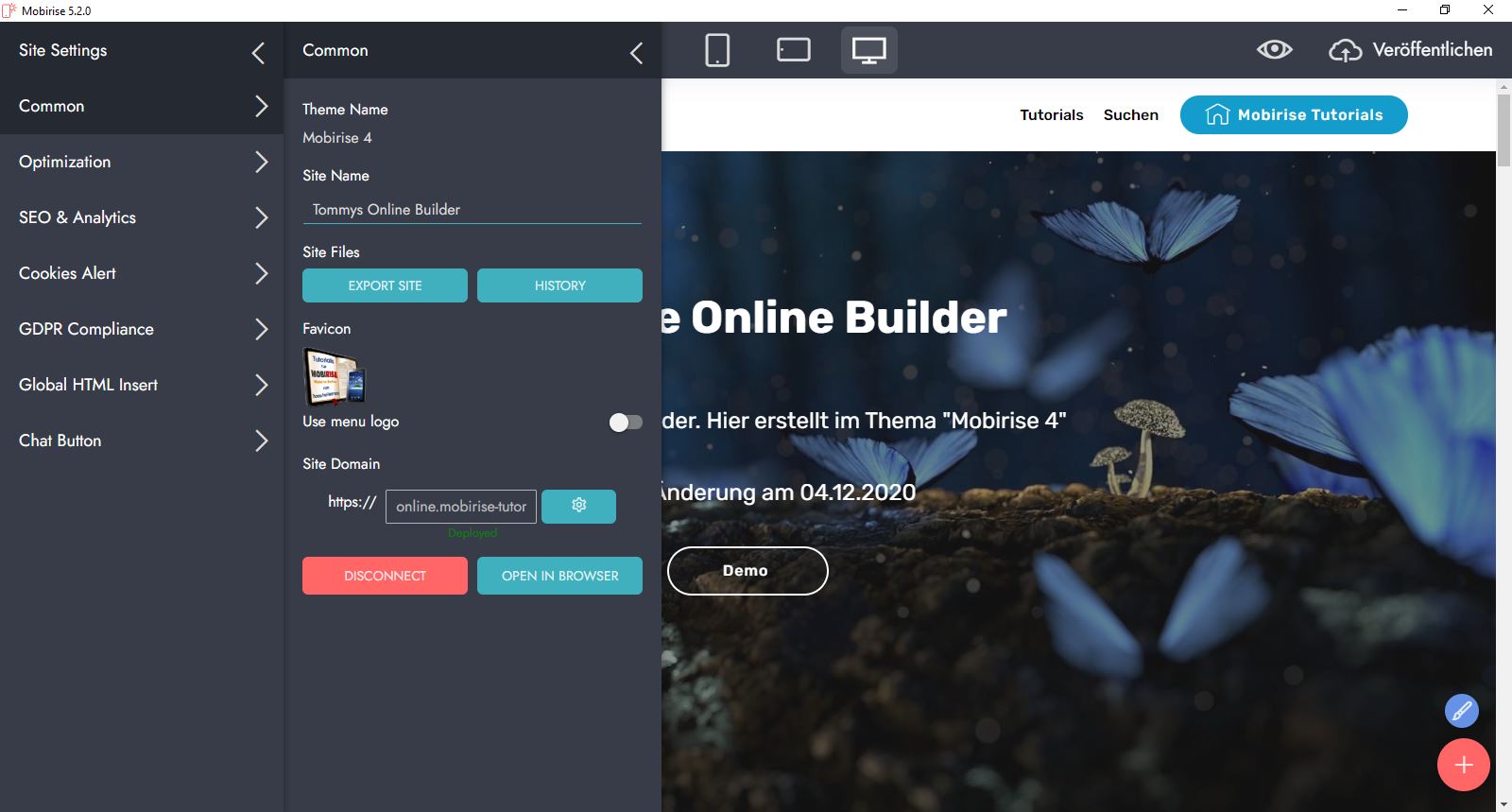 Diese Testseite von mir ist komplett online erstellt und wurde mit meiner eigenen Subdomain auf die DNS vom Mobirise-Server umgeleitet: